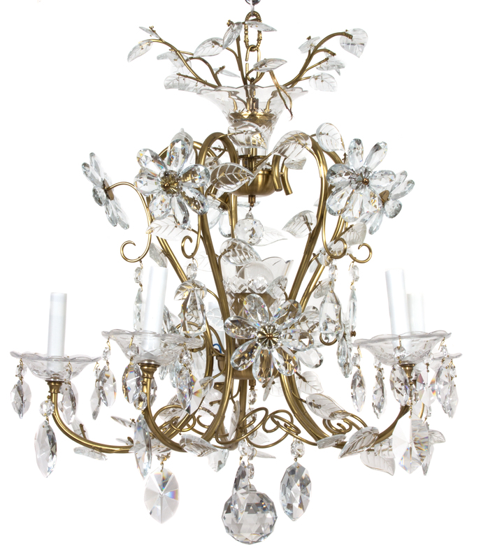 A Contemporary Gilt Metal and Glass Five-Light Chandelier