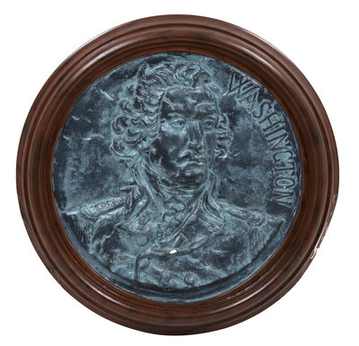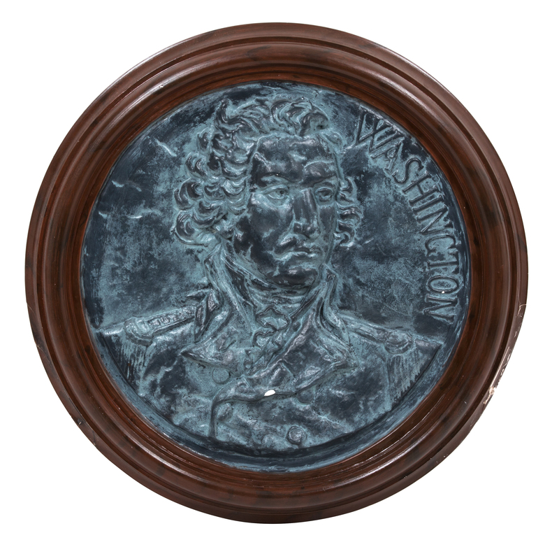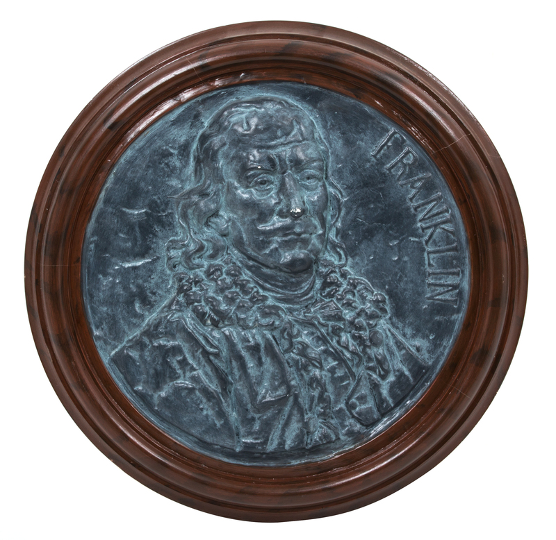 depicting George Washington and Benjamin Franklin, in molded wood frames.