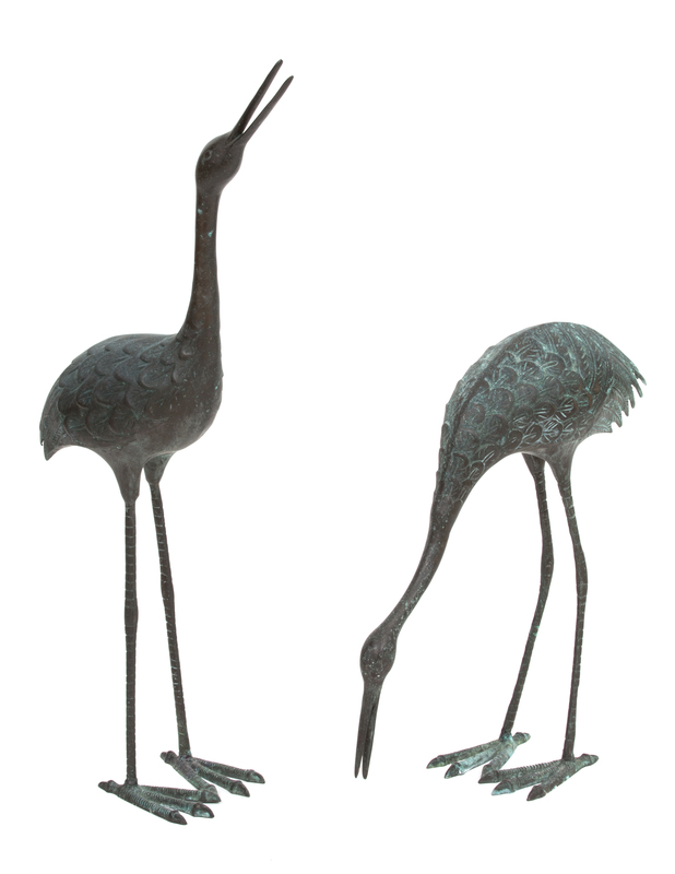 A Pair of Patinated Metal Standing Cranes