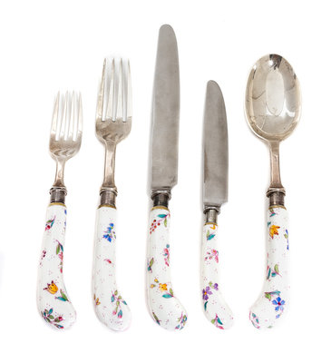 A Sterling and Porcelain Flatware Service for Nine