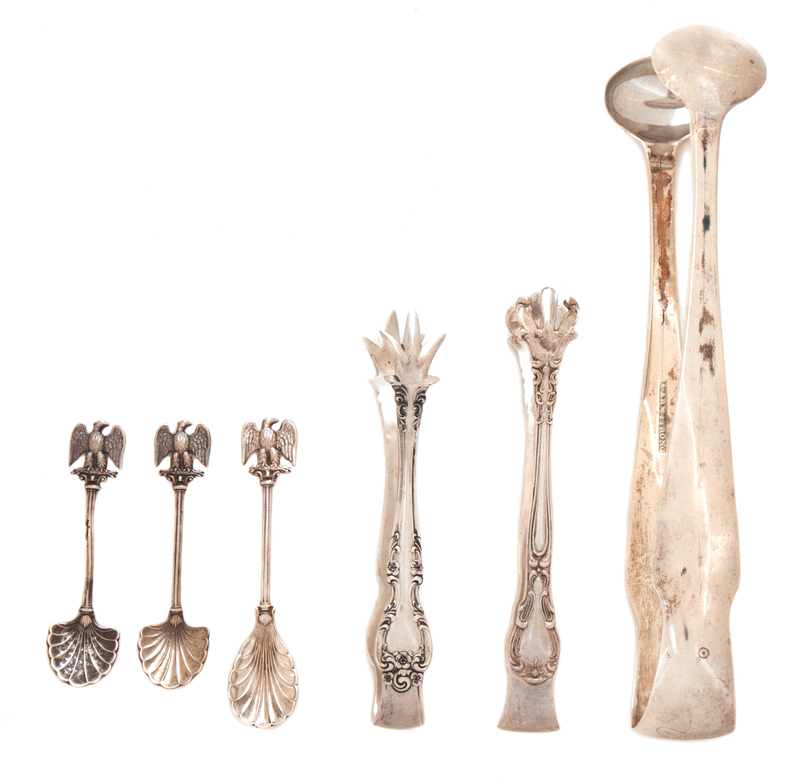 An Assembled Group of Silver Tongs and Condiment Spoons