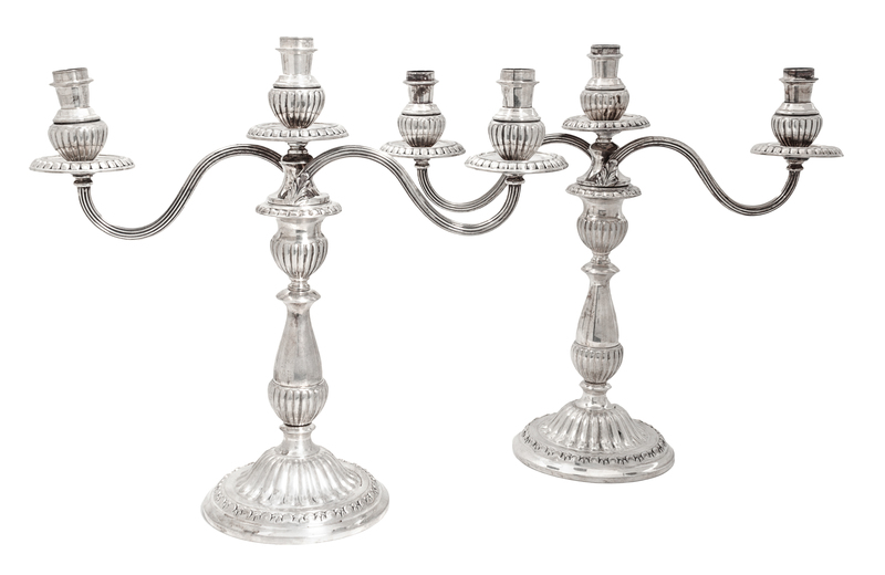 having baluster-form stems with reeded arms, fluted decoration, weighted.