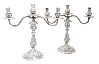 A Pair of Mexican Silver Three-Light Convertible Candelabra