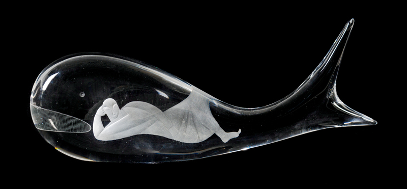 in clear and etched glass, etched signature Vicke Lindstrand/Kosta.