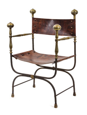 A Venetian Style Brass and Wrought Iron Armchair