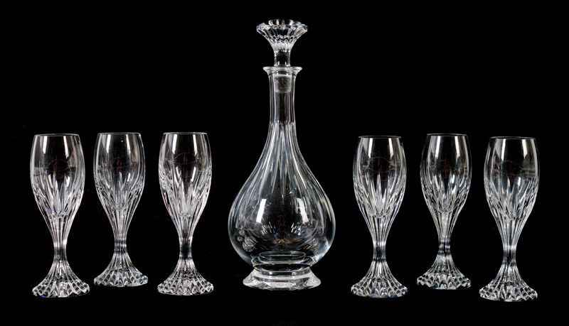 Massena pattern, comprising a decanter and six stemmed cordials.