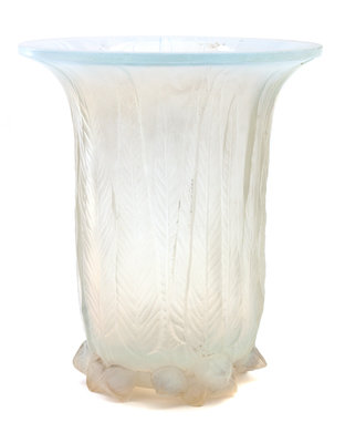 A Lalique Molded and Frosted Glass Eucalyptus Vase
