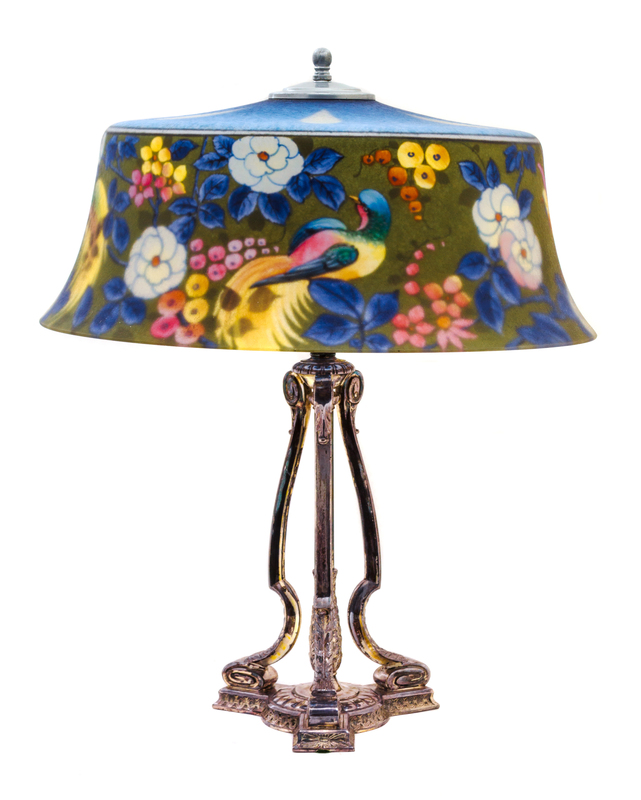 A Hand-Painted Glass Shade Table Lamp