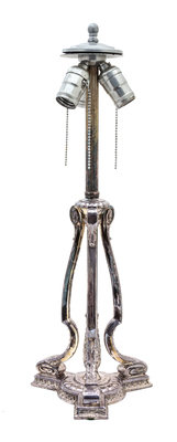 possibly Pairpoint, depicting flora and exotic birds on a silvered metal base.