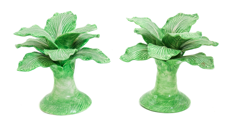 A Pair of Dodie Thayer Lettuce Ware Candlesticks