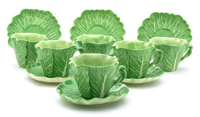 Six Dodie Thayer Lettuce Ware Coffee Cups and Saucers