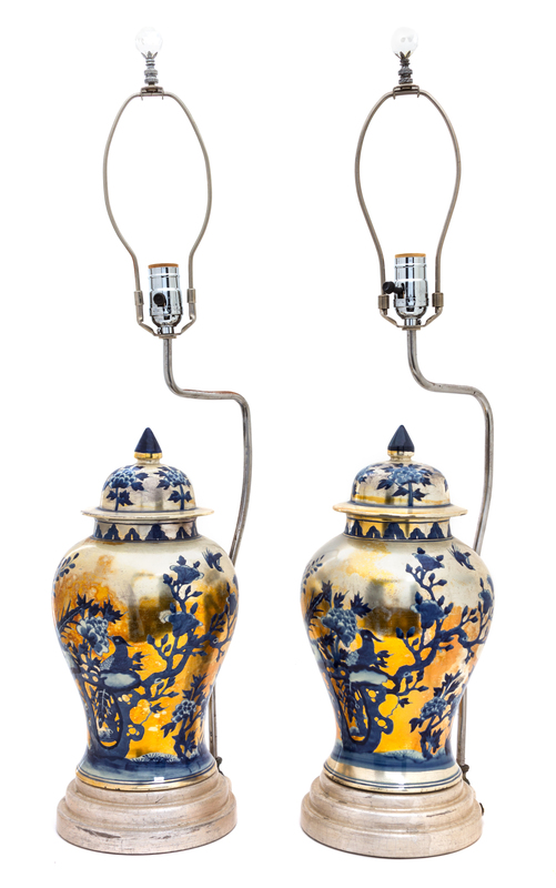 A Pair of Blue and White Covered Jars