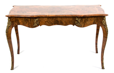having a shaped specimen top over one central apron drawer, raised on cabriole legs.