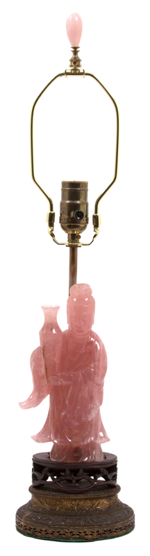 A Chinese Carved Rose Quartz Figure of Guanyin