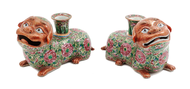 A Pair of Chinese Export Famille Rose Porcelain Candlesticks