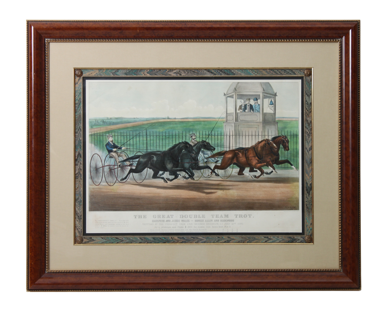 The Great Double Team Trot, hand-colored lithograph. Framed and matted.