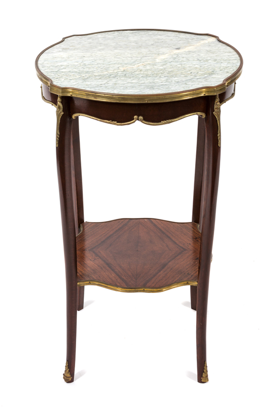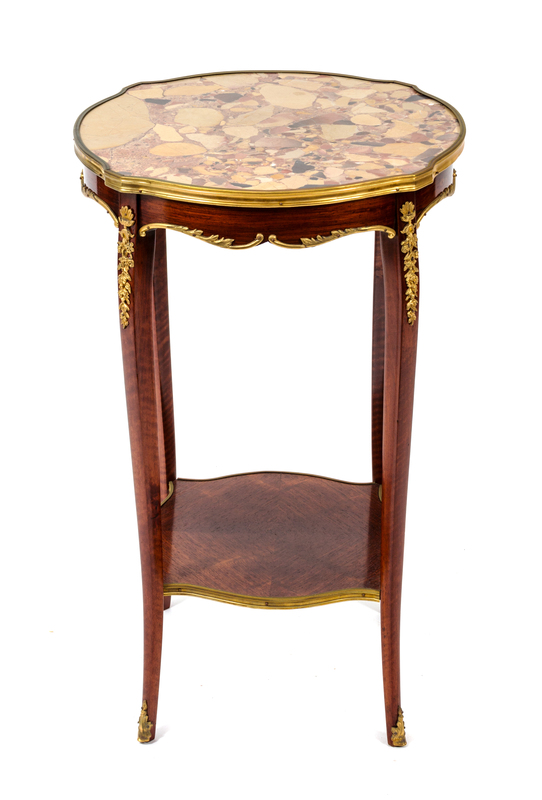 Two Similar Louis XV Style Gilt and Marble Top Gueridons