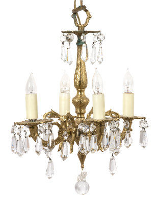 A Louis XV Style Gilt Bronze and Cut Glass Four-Light Chandelier