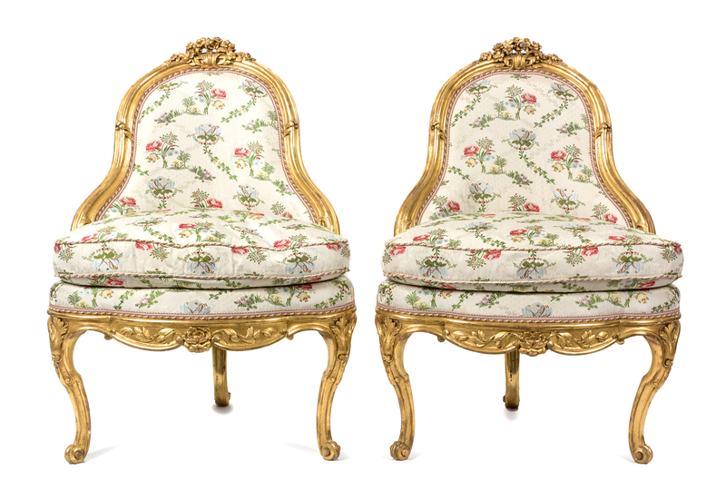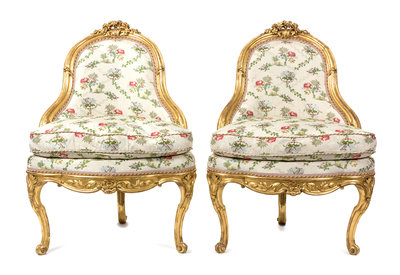 A Pair of Louis XV Style Giltwood Corner Chairs