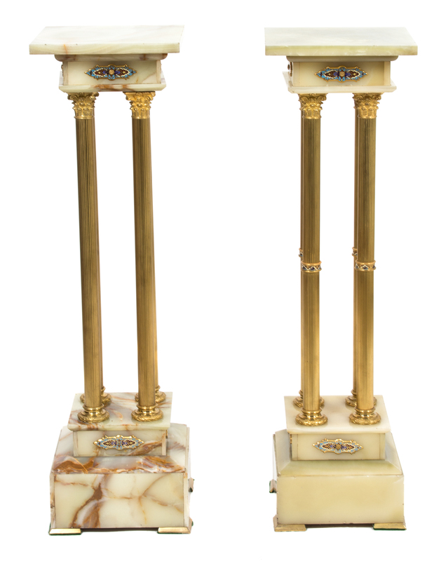 A Pair of Gilt Bronze Mounted Onyx Pedestals