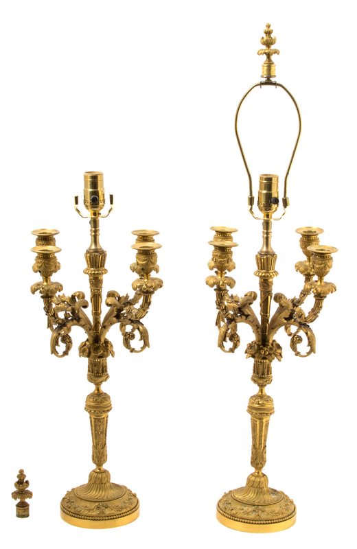 A Pair of Louis XV Style Gilt Bronze Four-Light Candelabra