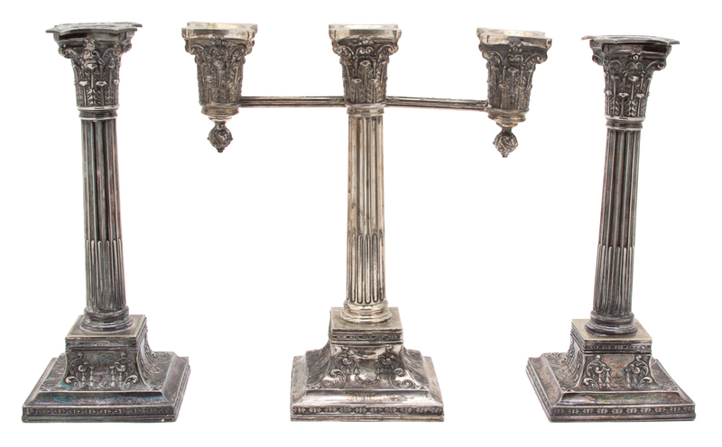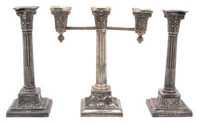 comprising a three-light candelabrum and two single candlesticks.