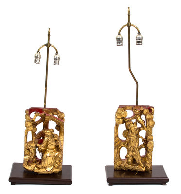 A Pair of Gilt and Lacquered Chinese Temple Carvings