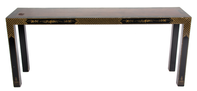 A Black and Gilt Chinoiserie Decorated Console Table