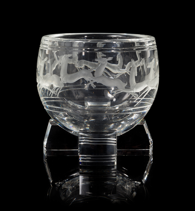 designed by Sidney Waugh in 1935Gazelle Bowl, model no. #0053with the original red leather carrying case and red leather folio, which contains a certificate and photo of the item.