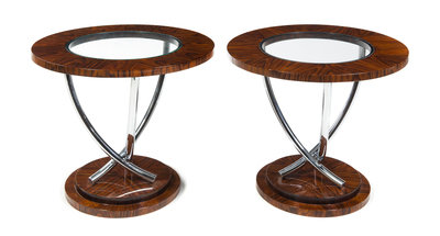 A Pair of Art Deco Rosewood, Chrome and Glass Occasional Tables