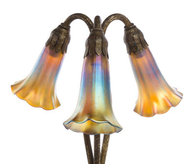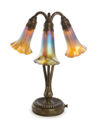 base stamped Tiffany Studios 319, each shade signed L.C.T Favrile