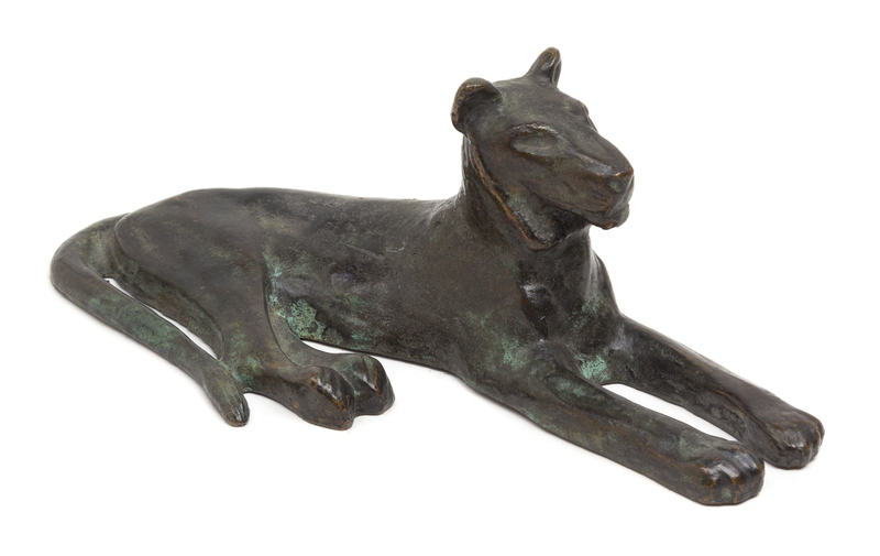 a bronze recumbent lion paperweight (891)
