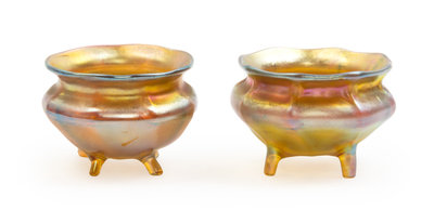 a set of two Favrile glass salts