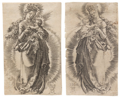 Virgin on a Crescent with a Starry Crown 1508 (accompanied by an additional engraving after Durer)