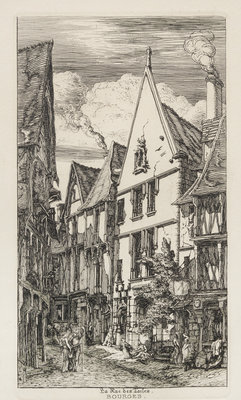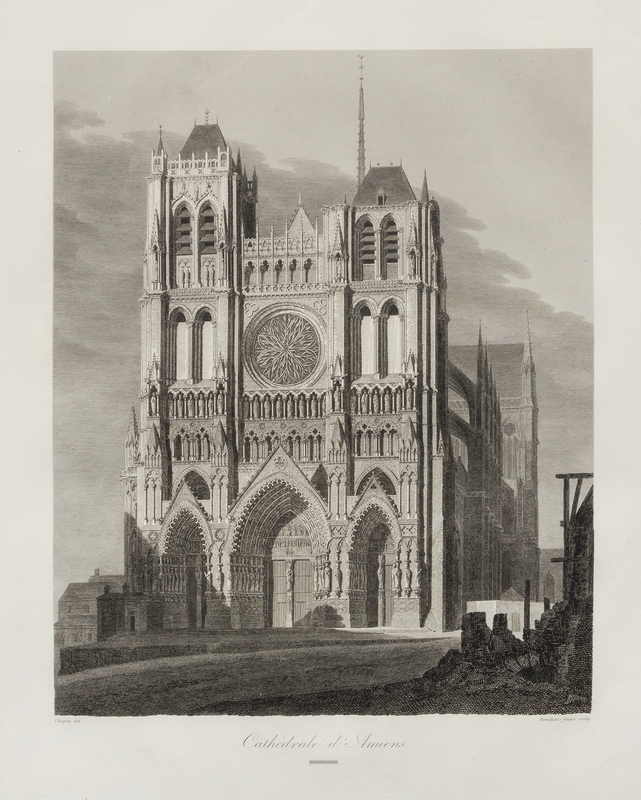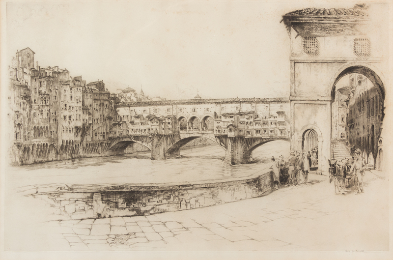 A group of architectural etchings consisting of Meryon Charles, La Rue des Toiles, Bourges; Frederick Arthur Farrell, Ponte Vecchio, Florence; and artist unknown Cathedrale d'Amiens