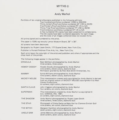 Myths, 1981 (set of ten announcement cards with cover and contents card)