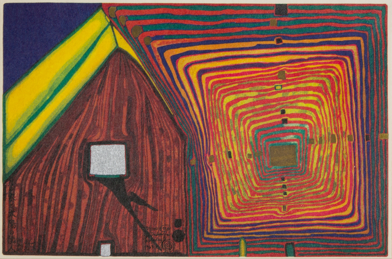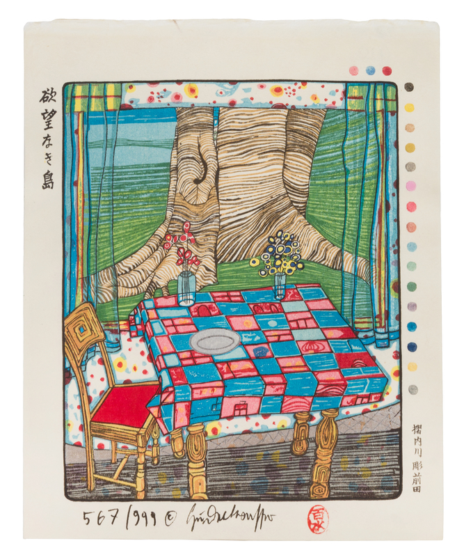 The Woodcut Works of Hundertwasser, 1977 (complete volume with original color woodcut and wooden case)