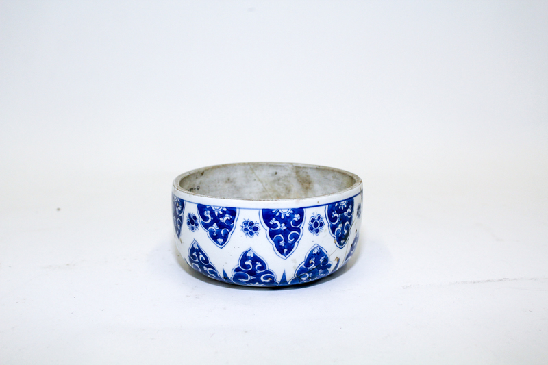 raised on a lotus form base above a rectangular plinth, together with a blue and white ginger jar cover.