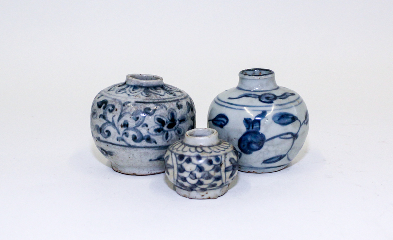 Three Small Blue and White Porcelain Jars.