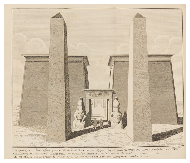 Indian Antiquities: or, Dissertations... of Hindostan... Introductory to the History of Hindostan Upon a Comprehensive Scale. London: C. and W. Galabin, 1806-1812.7 volumes, 8vo (205 x 130 mm). Numerous engraved plates, (most folding), engraved folding map. (Spotting and marginal soiling, light offsetting.) Contemporary calf, gilt-lettered spines (tape repairs and residue, rubbing to boards and spine, discreet library label). FIRST EDITION covering topics spanning from religion to astrology, spiritualism, theology of Hindostan, ancient geographical divisions, the grand code of civil laws, government structure, literature, including speculation about an Indian origin to the Druids.