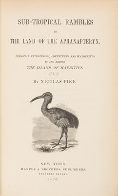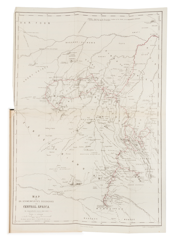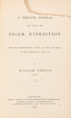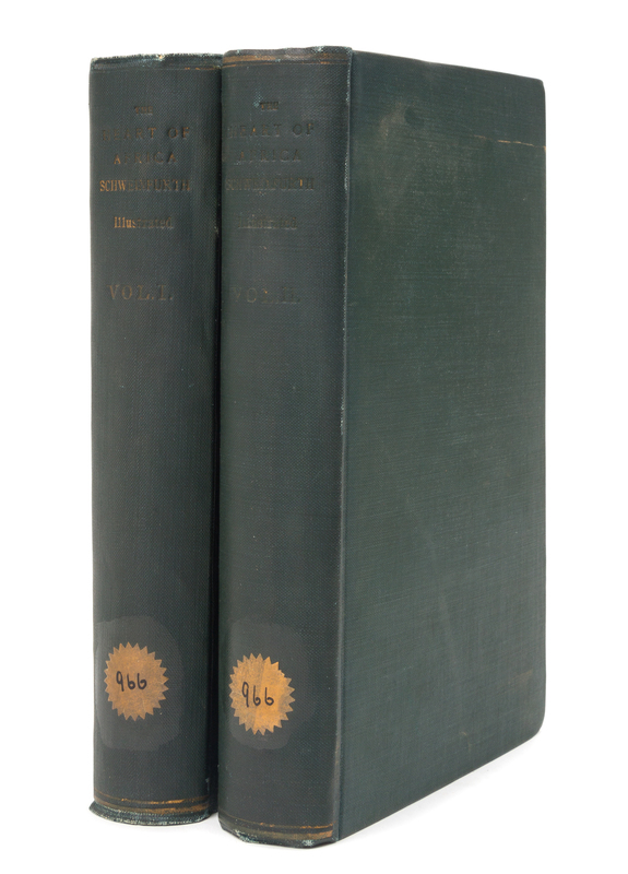 A group of works about Africa, comprising: ALEXANDER, James Edward. Expedition of Discovery into the Interior of Africa... Philadelphia, 1838. 2 volumes. - PIKE, Nicholas. Sub-tropical Rambles in the Land of the Aphanapteryx... in the Island of Mauritius. New York, 1873. - SCHWEINFURTH, George. Heart of Africa: Three Years Travels and Adventures in Central Africa from 1868-1871. New York, 1874. 2 volumes. - SHAW, Thomas. Travels or Observations Relating to Several Parts of Barbary and the Levant. Edinburgh: Ritchie, 1808. 2 volumes. - SIMPSON, William. Private Journal Kept During the Niger Expedition. London, 1843. - Together, 5 works in 8 volumes, 8vo, all in modern and contemporary bindings, condition generally good.