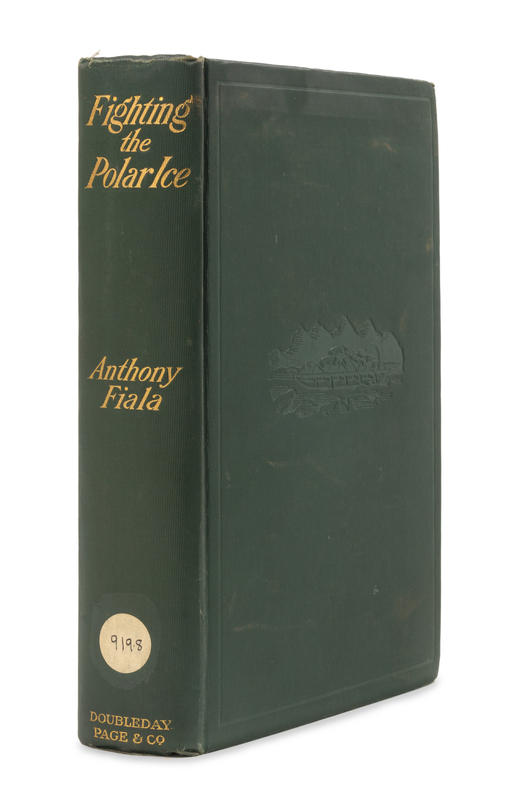 Fighting the Polar Ice. New York: Doubleday, Page and Company, 1907.8vo. Photographic illustrations, folding map. (Hinge starting.) Publisher's green cloth, spine gilt-lettered (light rubbing, corners bumped). Second edition. Account of the Baldwin-Ziegler expedition from the perspective of Anthony Fiala, an American explorer who accompanied the expedition as a photographer and commander. "Though the expedition failed of its object through an unprecedented experience of unfavourable conditons linked with the loss of the ship, it did not return without results and the records of its work."