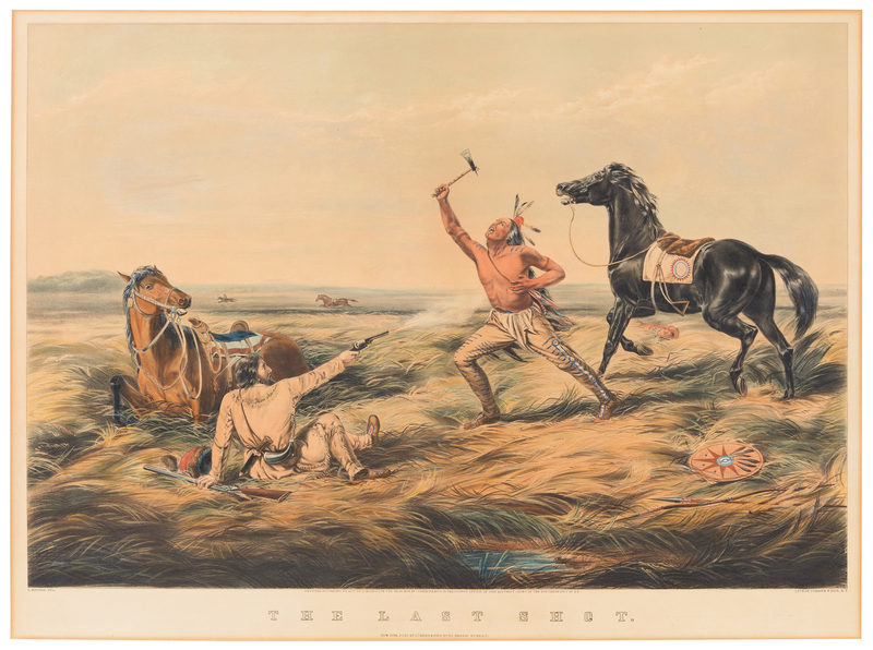 The Last ShotHand-colored lithograph heightened in gum arabic, 1858, image 510 x 650mm (550 x 715 sheet), on wove paper, with margins, matted and framed (some old marginal mat burn, verso browned from old framing).