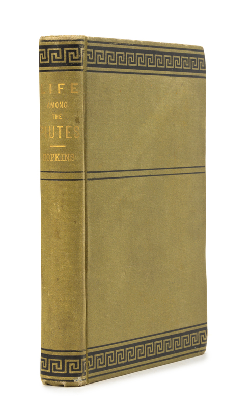 Life Among the Piutes: Their Wrongs and Claims. Boston and New York: G.P. Putnam's Sons, 1883.8vo. Publisher's decorated cloth (corners bumped, some very light wear just to extremities, hinges just starting). FIRST EDITION, including information about the hardships of the Piute Tribe as well as Princess Winnemuca's description of her experiences as a guide in the Bannock War of 1878. Her book was among the first published by a Native American who had grown up with her tribe.