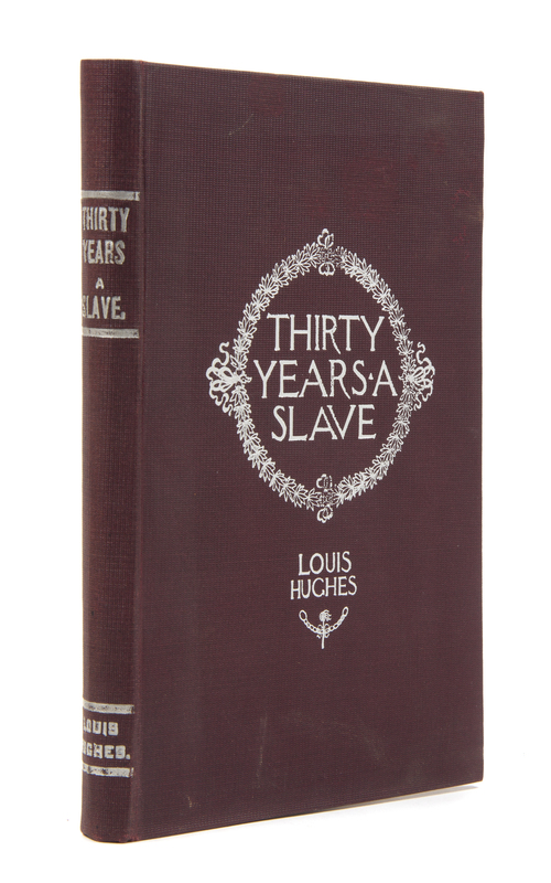 Thirty Years a Slave. From Bondage to Freedom. Milwaukee: South Side Printing Company, 1897.8vo. Portrait frontispiece of Louis Hughes, numerous illustrations. (A few old tape repairs, otherwise fine.) Publisher's maroon cloth gilt. FIRST EDITION. Though Hughes published his memoir after slavery had been abolished, he presented "his story in compliance with the suggestion of friends, and in the hope that it may add something of accurate information regarding the character and influence of an institution which for two hundred years dominated the country" (introduction).