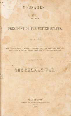 Messages of the President of the United States with the Correspondence therewith Communicated, between the Secretary of War and other Officers of the Government, on the Subject of the Mexican War. Washington: Wendell and Van Benthuysen, 1848. 8vo (228 x 147 mm). (Some light spotting.) Contemporary half brown calf, marbled boards, smooth spine gilt (some light wear, hinges starting). FIRST EDITION, "perhaps the most important collection of material we have for the history of the Mexican War" (Sabin). Sabin 48114.