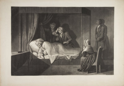 STUART, Gilbert, after. S.H. GIMBEL, Engraver. George Washington. N.p.: n.p., ca 1830. Mezzotint, image 618 x 420 mm (681 x 475 mm sheet). (A few marginal chips and tears, some with associated repairs on verso, some light overall browning, a few soft creases.) Full length standing portrait, the "Tea-Pot Portrait." See Baker, The Engraved Portraits of Washington, 1880.[With:]DONEY, Thomas, after J. DUTHIE, engraver. The Last Moments of Washington. New York: William Pate, ca 1861. Mezzotint, image 461 x 696 mm (588 x 840 mm sheet). (A few marginal chips or tears.)