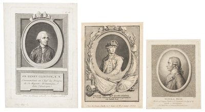 A group of 18th- and early 19th-century small-format engraved portraits of historic figures, including portraits of: the Marquis de La Fayette, Major General Sullivan, General Reed, Sir Henry Clinton, General Gates, John Paul Jones, and Otacite, Chief of the Cherokees. Together, 15 portraits, images 91/144 x 74/101 mm (150/223 x 116/155 mm sheet), condition generally fine.