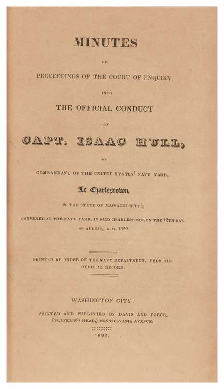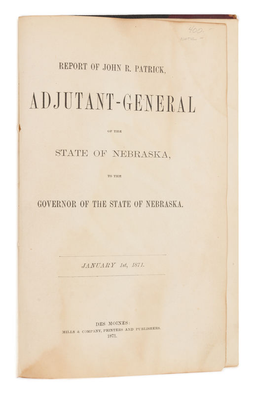 A group of works about War Memoirs, comprising: HUNT, Gilbert J. The Late War, Between the United States and Great Britian... New York: David Longworth, 1816. - [PATRICK, John R.]. Report of John R. Patrick, Adjutant-General of the State of Nebraska. to the Governor of the State of Nebraska. Des Moines: Mills and Company, 1871. Provenance: A.G. Murphey (address stamp). - [HULL, Isaac]. Minutes of Proceedings of the Court of Enquiry into the Official Conduct of Capt. Isaac Hull... Washington City: Davis and Force, 1822. - CUNNINGHAM, D. Report of the Ohio Antietam Battlefield Commission. Springfield: Springfield Publishing Company, 1904. - SMITH, William R. (Editor). History of the Twenty-second United States Infantry 1866-1922. n.p., n.p., n.d. - STILES, Robert. Four Years Under Marse Robert. New York and Washington: The Neale Publishing Company, 1903. - Together, 6 works in 6 volumes, all in modern and contemporary bindings, 8vo, condition generally good.