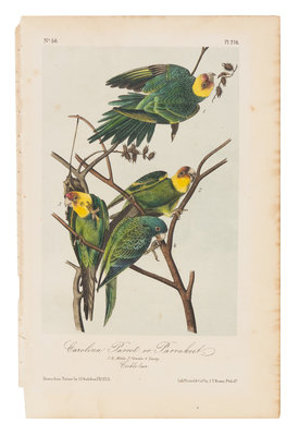 Carolina Parrot or Parrakeet (Plate 278)Hand-colored lithograph, New York and Philadelphia, n.d., royal octavo, 264 x 171 mm sheet, matted, sheet edges browning, a few pale mostly marginal spots. Second edition (or later).
